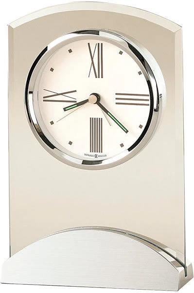 - Slightly arched at the top, this alarm clock features beveled glass.