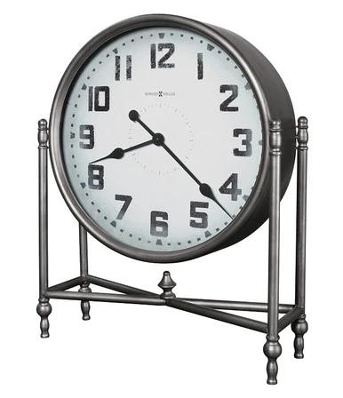 These oversized, metal accent clocks, 635-222 Childress by Howard Miller, feature a 19.75″ round metal case finished in light charcoal and is supported on a detailed metal base.