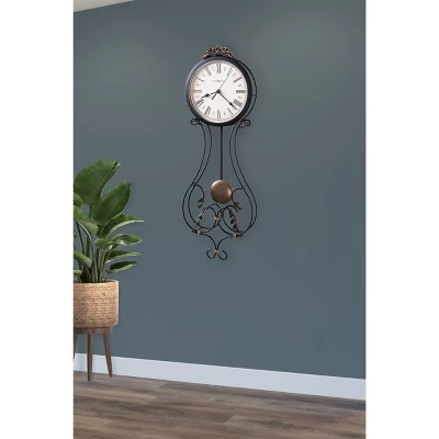 - WALL CLOCK: This Paulina Wall Clock has a pendulum bob finished in antique gold, suspended on a charcoal gray-finished pendulum to match your home decor. The clock’s quartz movement makes a soft ticking noise without the use of chimes for a quieter environment.