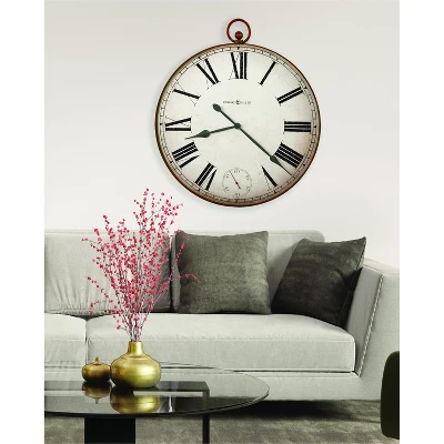 - Pocket Watch Design: Unlike a traditional large wall clock, which is simply circular in style, this Howard Miller design features unique styling mimicking a classic pocket watch. Resting atop the clock’s circular shape is a faux knurled knob. A separate seconds track at the “6” position helps to complete the pocket watch look. When placed in any room, this clock will become a design focal point.