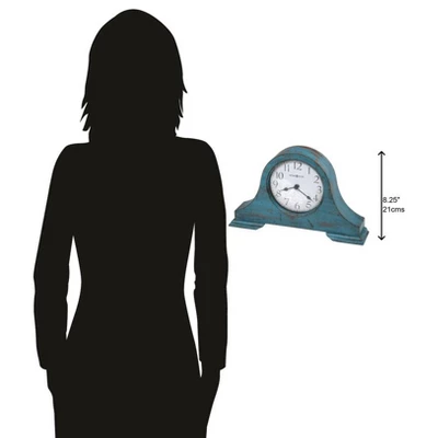 - MANTEL CLOCK: This Tamson Mantel Clock features a worn teal blue finish to complement your home decor. The clock’s quartz movement makes a soft ticking noise without the use of chimes for a quieter environment.