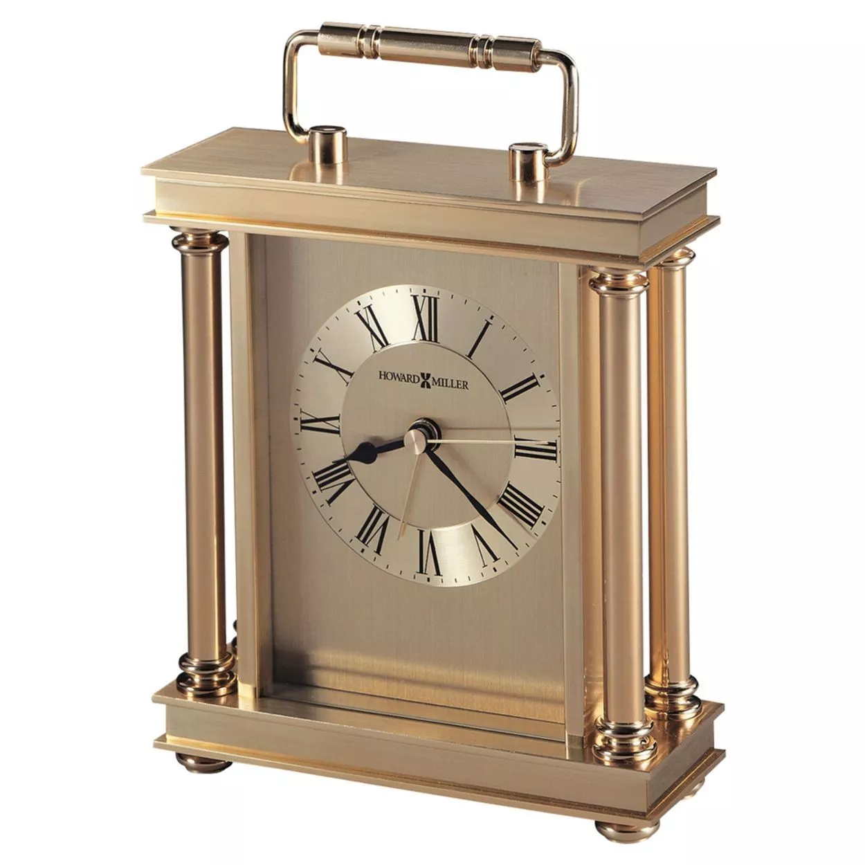 HIGH QUALITY: The enduring design shows traditional Roman numerals, with IIII instead of IV. Easily tell time with the circular, diamond-cut numeral ring, black hands, brass second and alarm hands, and glass crystal to stand out over the brass-tone dial.