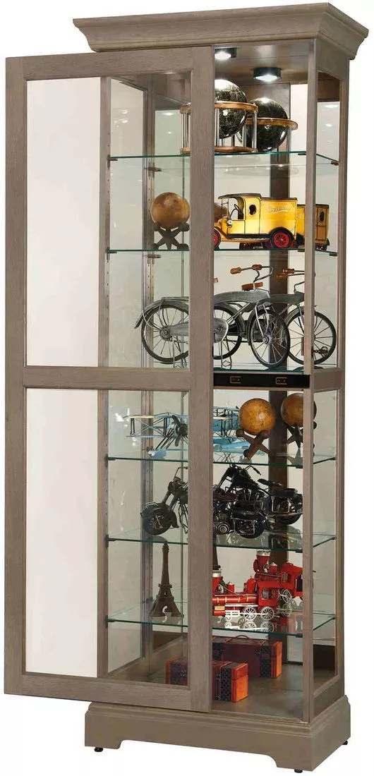 - Plate grooves in the glass shelves allow for vertical display of your collectible plates.